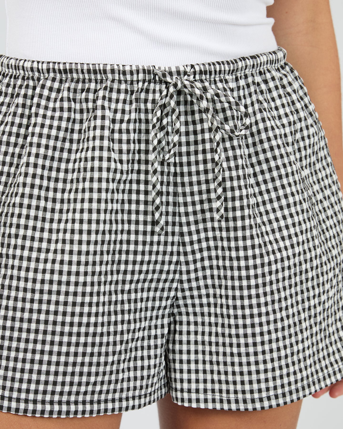 The Charli Short combines a relaxed fit with a classic check print for effortless style. Featuring an elasticated waistband and an adjustable drawstring, these shorts provide a customizable and comfortable fit, making them a versatile choice for casual wear.