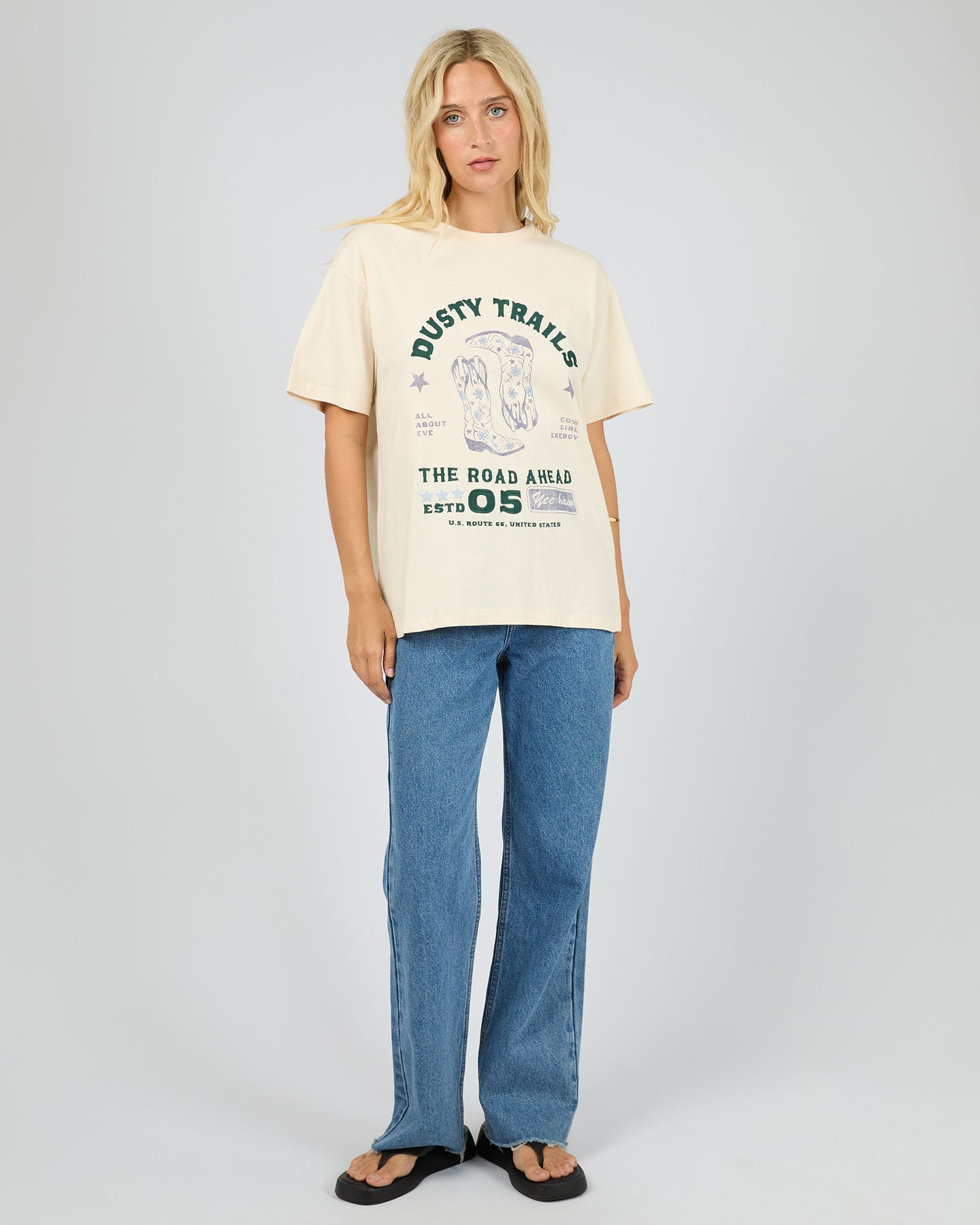The Dusty Trails Relaxed Tee is built for movement, memory, and the long road west. Cut from soft, breathable cotton in a sun-washed vanilla white, it carries the quiet ease of a well-worn favourite. Whether layered under an open shirt, paired with broken-in denim, or thrown on after golden-hour swims, the Dusty Trails Tee is a modern essential with the soul of the open road. Clean lines, soft structure, and a spirit of easy-going adventure.