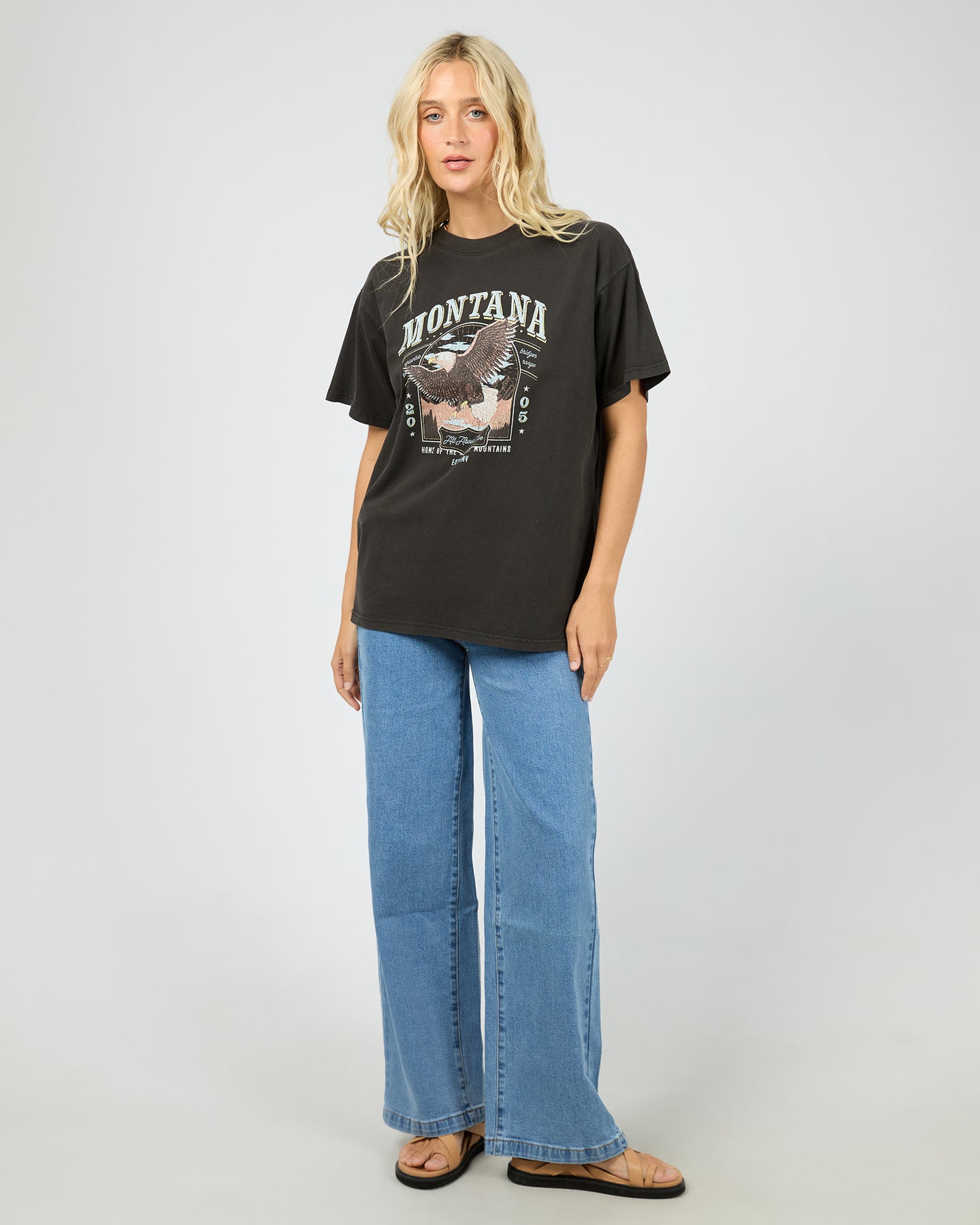 The Montana Relaxed Tee channels vintage Americana vibes with a bold eagle graphic front and centre, printed on soft cotton in a classic vintage white. Its relaxed fit makes it perfect for pairing with denim cut-offs or wide-leg pants for an easy, throw-on-and-go spring look. A statement tee with laid-back attitude.